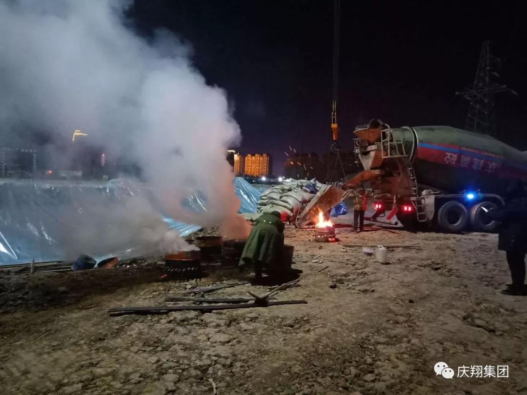 “其實,這場大雪可以說是意料之外、情理之中。我們對氣溫下降,甚至飄雪早有準備。”耿治平說,11月15日,廠房A列澆筑完畢,這標志著整個廠房基礎建設完成,總計使用混凝土1100立方米。當天夜里,氣溫就驟降至零下18度。第二天,慶安項目部組織人員,迅速用稻殼、編織袋等完成了保溫措施。沒過幾天,11月18日天空洋洋灑灑飄起了雪花,“幸好保溫及時,不然下雪后就晚了。”