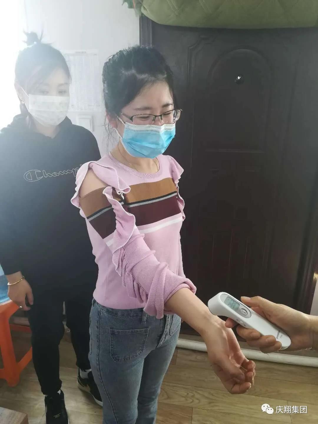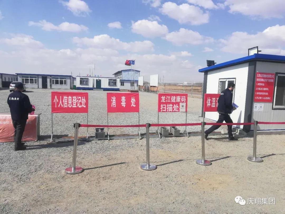 記者在大門口看到了一塊寫著“大慶市慶翔熱電有限公司新冠肺炎進出廠檢查措施”的牌子,列著各項防疫措施。旁邊有幾份省市下發的關于新冠肺炎疫情的紅頭文件,以及幾塊寫著“測溫處”“掃碼處”“消毒處”“登記處”的牌子。幾名員工正在測量體溫及掃“龍江健康碼”。宋宇說:“為了不讓新冠肺炎疫情擾亂項目復工進程,按照集團副總經理兼大慶慶翔總經理王振君的指示,嚴格制定了四條防疫措施,要求從上到下全體人員必須遵守。”他介紹,一是進出廠必須測量體溫;二是進出廠必須掃描“龍江健康碼”;三是早晚對人員用酒精,對辦公室、工作區域用84消毒液消毒;四是進出廠必須登記個人信息,“這樣就做到了全方位、無死角、不漏網。”