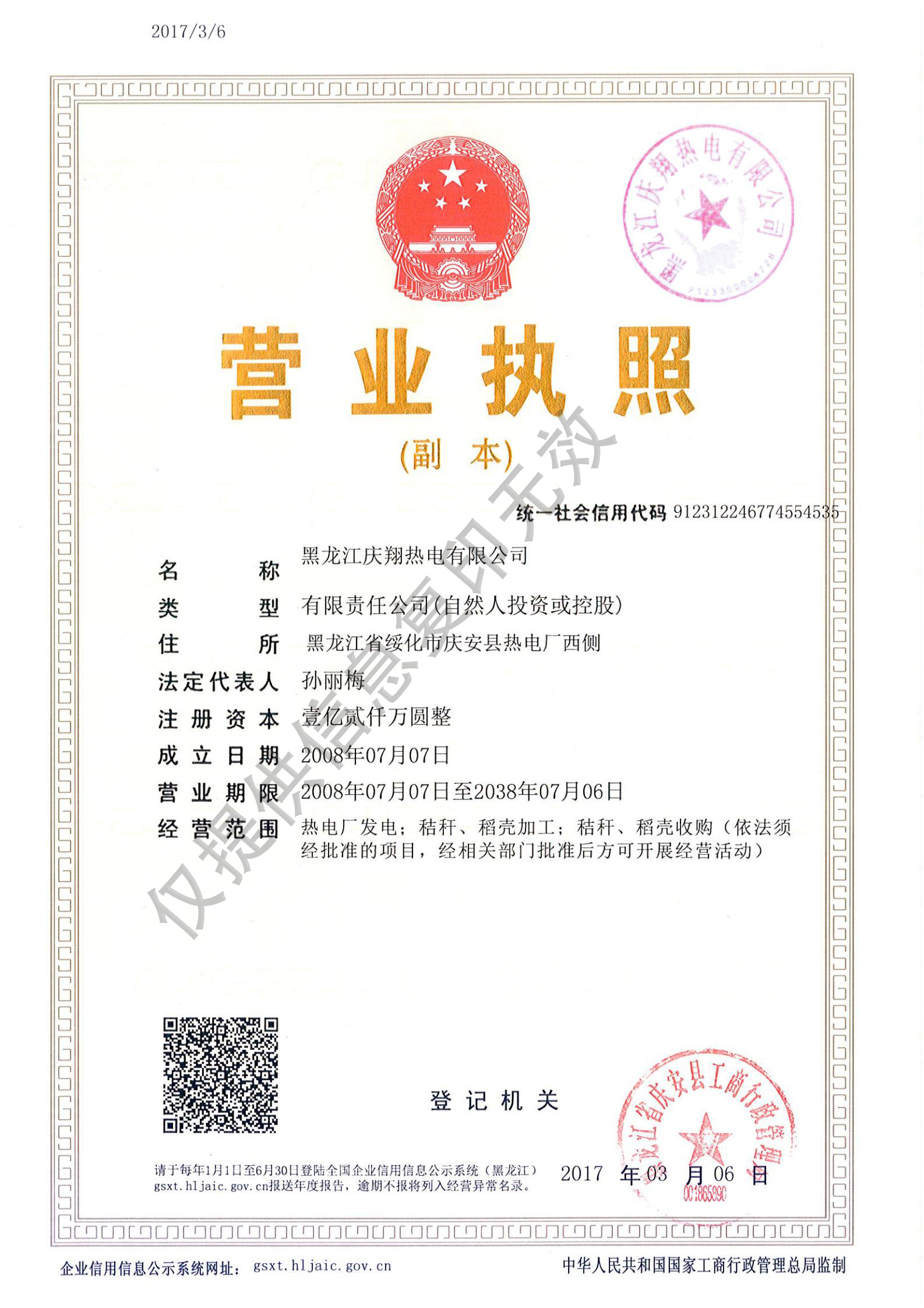 慶翔熱電營業執照